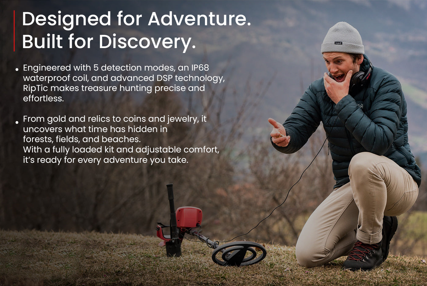 Riptic can detect a variety of metals including coins, jewelry, relics, and even small gold or silver objects buried in the ground.