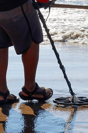 Absolutely. The Riptic metal detector includes a waterproof search coil, making it ideal for wet sand, shallow water, and beach use. Just avoid submerging the control box.